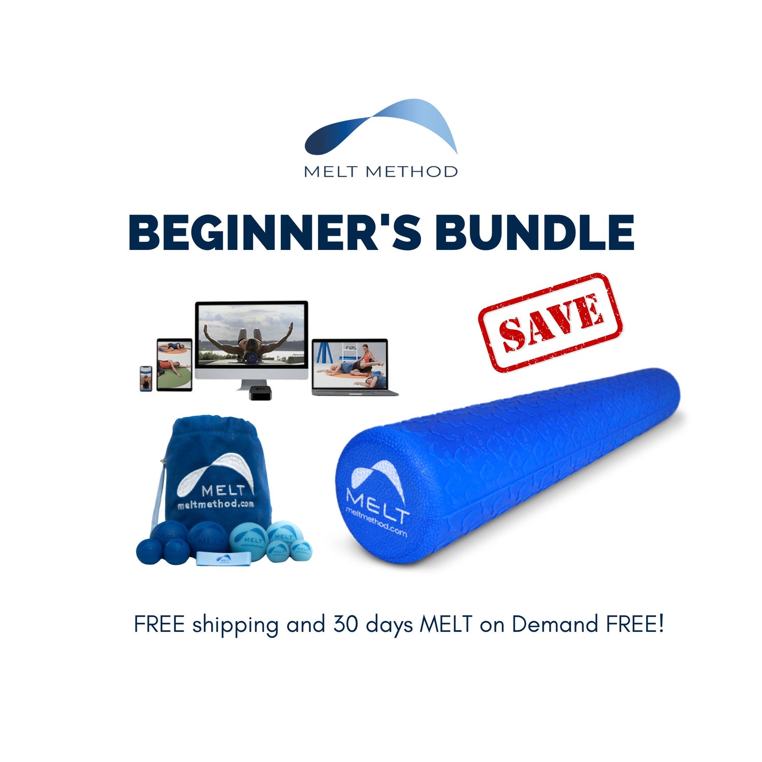 The Beginner Bundle can be purchased here and includes everything you need to practice the techniques learned in class. Includes the soft foam roller, therapy ball kit (8 balls + bunion band), 30-days of MELT on Demand streaming classes and FREE shipping.
