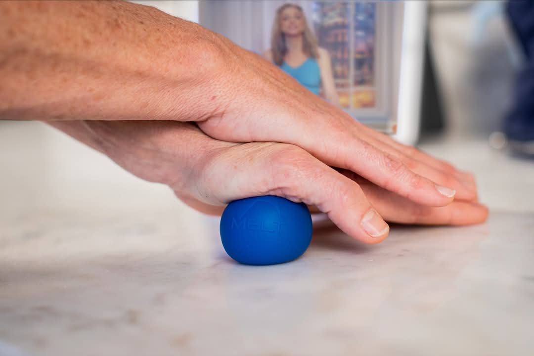 Chair MELT is a gentler option with all moves done seated or standing. Includes arthritis hand treatment, face treatment and foot treatments using the therapy balls as well as breathwork techniques with the soft roller seated.